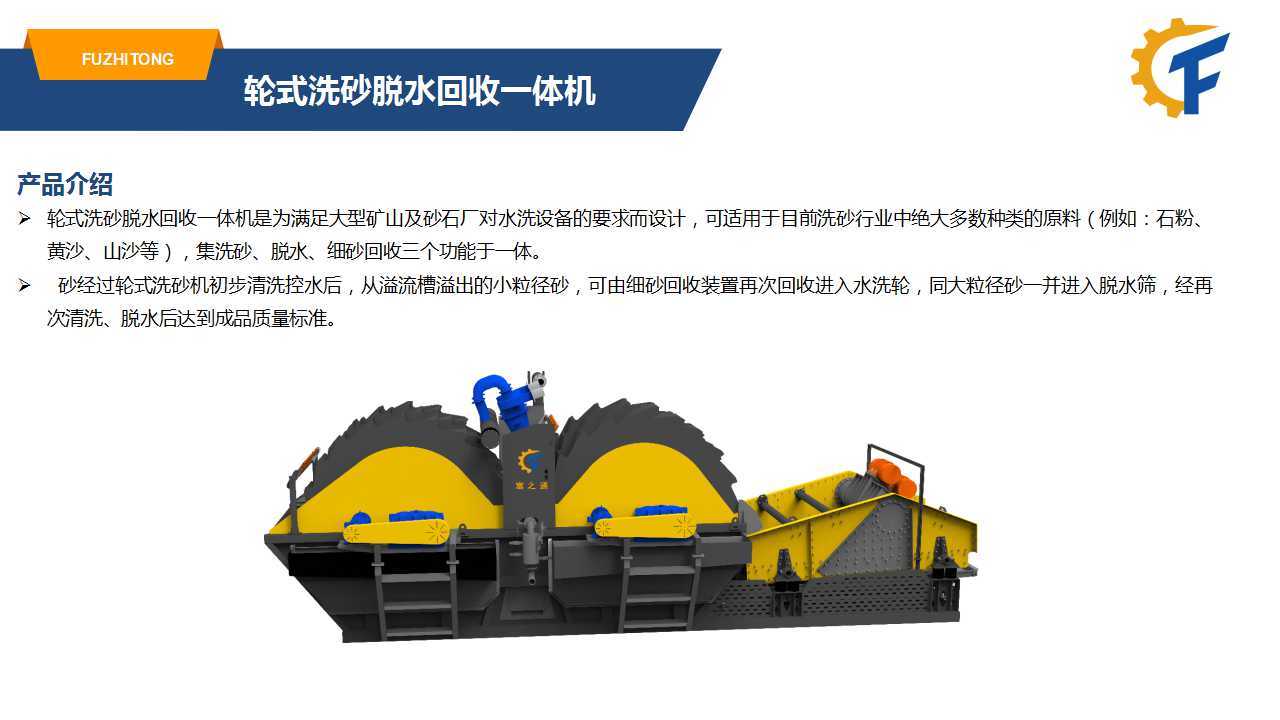 輪式洗砂脫水回收一體機(jī)是為滿足大型礦山及砂石廠對(duì)水洗設(shè)備的要求而設(shè)計(jì),可適用于目前洗砂行業(yè)中絕大多數(shù)種類的原料(例如:石粉、黃沙、山沙等),集水洗、脫水、細(xì)砂回收三個(gè)功能
